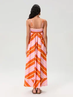 Women Cami Dress Stripe/Floral Print Spaghetti Straps Sleeveless Backless A-line Dress Summer Beach Holiday Long Dress